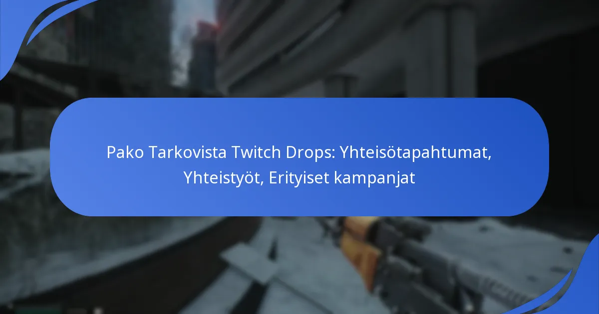 Twitch Drops Escape From Tarkovissa ovat erityisiä palkintoja, joita annetaan pelaajille striimien katsomisesta yhteisötapahtumien aikana. Nämä tapahtumat sisältävät usein yhteistyöprojekteja ja kampanjoita, jotka parantavat pelaajien sitoutumista ja tarjoavat eksklusiivisia pelin sisäisiä esineitä.
