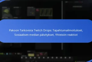 Useita yhteisötapahtumia, joissa on Twitch Drops, on suunniteltu vuoden aikana. Nämä tapahtumat osuvat tyypillisesti pelipäivityksiin, erityisiin kampanjoihin tai yhteistyöhön suosittujen striimaajien kanssa. Pidä silmällä virallisia Escape From Tarkov –sosiaalisen median kanavia ilmoituksia ja yksityiskohtaisia aikatauluja varten.